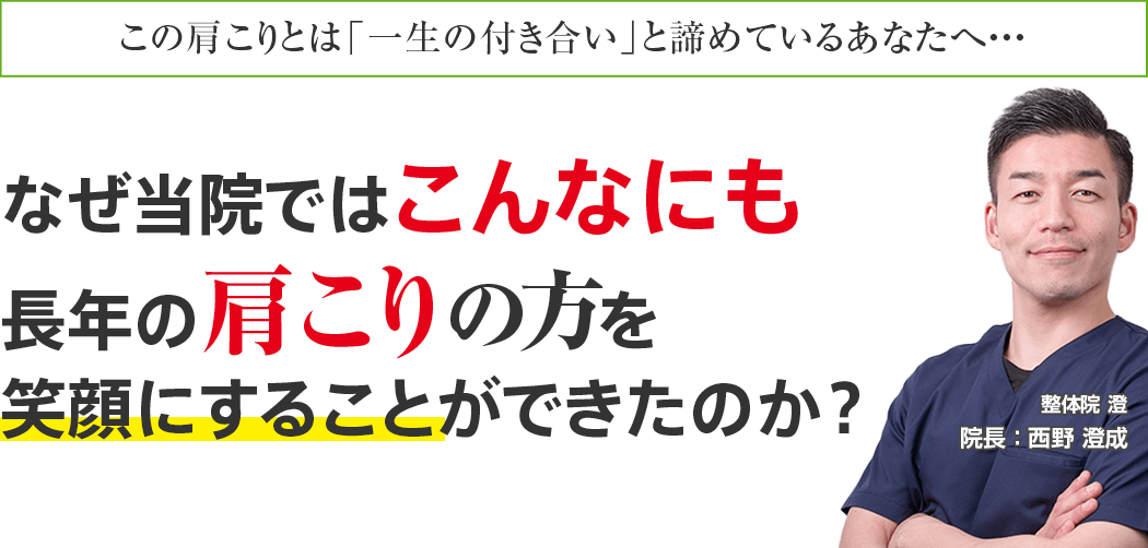 多くの方は長年の肩こりがあっても、「病院でもう歳だからと言われたから…、これはもう持病だから仕方ない…、この先もずっと我慢するしかない…」と諦めてしまいます。