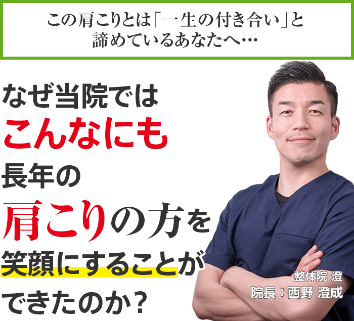 私は、すぐに痛みが再発するようなその場しのぎの施術や、小手先の技術を振りかざし、表面的な痛みが取れればいいということは全く考えていません。あなたのその肩こりを改善したいと本気で考えています。